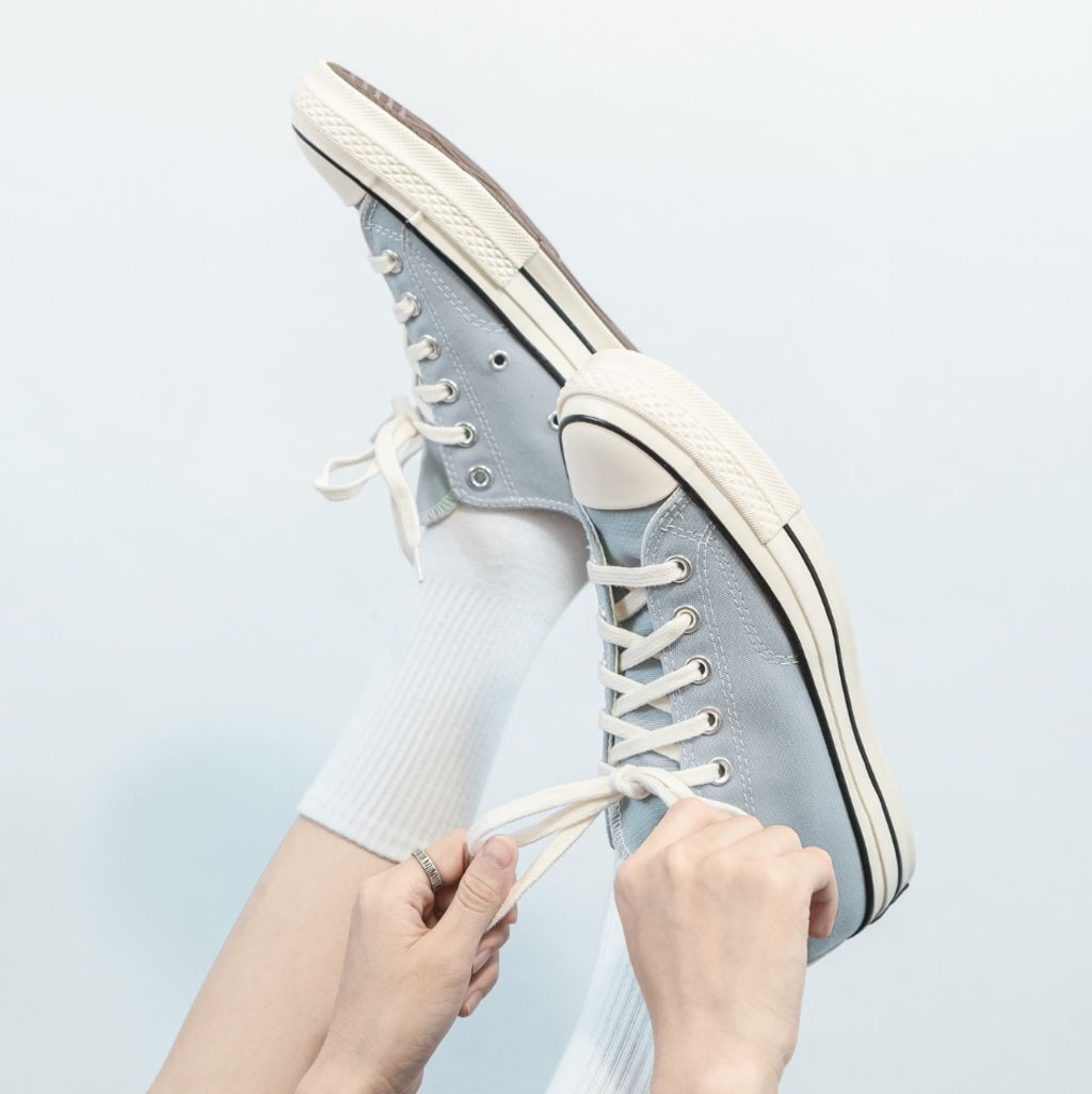 有別於常見藍色,這雙選用帶點灰霧感的莫蘭迪色系